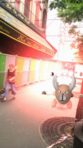 Um sein Verständnis zu vertiefen, beschloss Dworzak das Spiel selbst herunterzuladen. Er ließ sich führen, von Punkten anziehen, an die ihn das Spiel brachte und öffnete die App passiv, nur um zu sehen, was da war. Er nutzte Bildschirmfotos des Telefons und die integrierte Kamera, die Teil des Spieles ist, um eine Studie über die Beziehung des Augmented-Reality-Spiels mit der physischen Welt und den wechselnden Bezug der Menschen zu ihrer Umgebung aufzubauen.